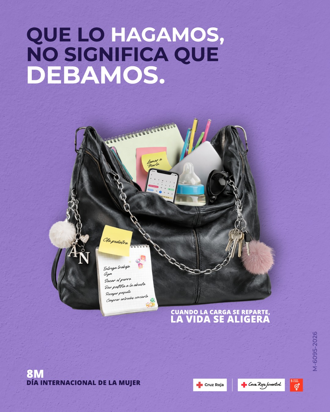 4 de marzo de 2026. Con una premisa -Que lo hagamos, no significa que debamos- y una solución –Cuando la carga se reparte, la vida se aligera-, Cruz Roja y Cruz Roja Juventud ponen el acento en la carga mental que sufren las mujeres desde edades muy tempranas por el exceso de responsabilidades no compartidas, en su nueva campaña de sensibilización con motivo del Día Internacional de la Mujer.