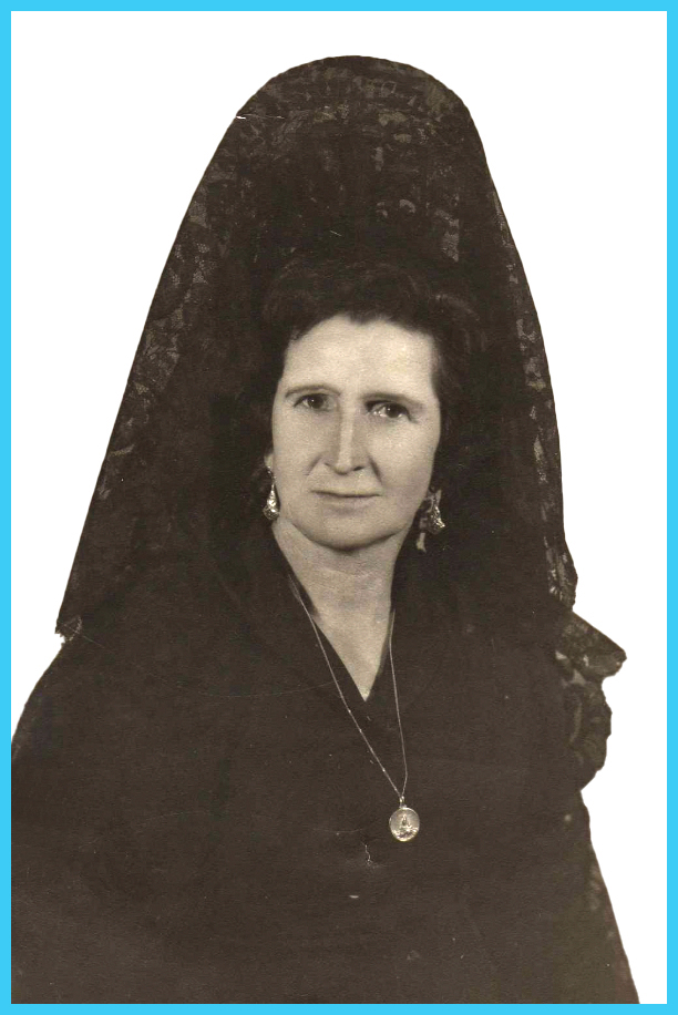 Y ella fue con mantilla, colocada con gracia, elegancia y solemnidad como atestigua la fotografía que he podido recadar buscando las cosas de nuestro pueblo en la que sus protagonistas eran mujeres, como expuso el Ayuntamiento en aquella colmena que situaron en el pasillo de la Biblioteca.